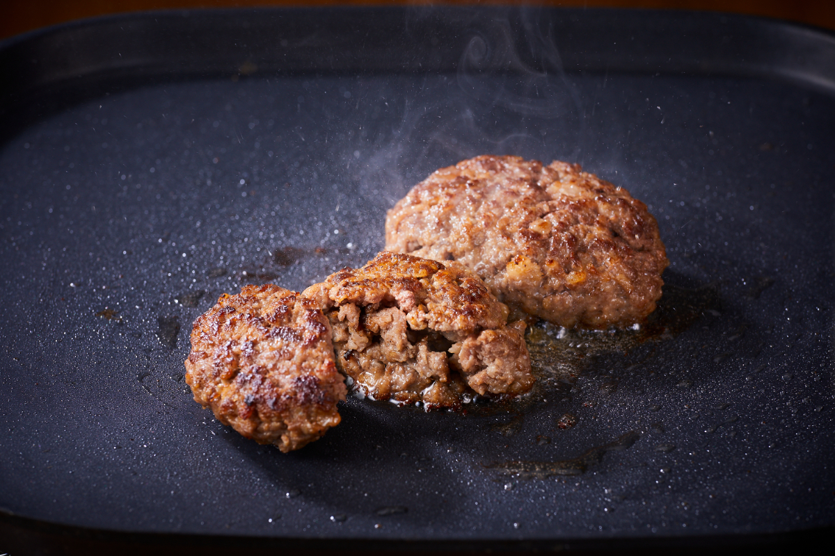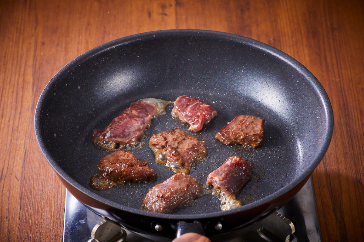お肉の旨味を逃さず焼くために、油を引かず中火で少量ずつ焼いてください。